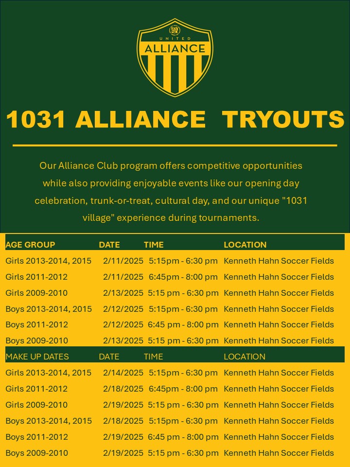 All Alliance tryouts are run via the AYSO guidelines to ensure fairness.