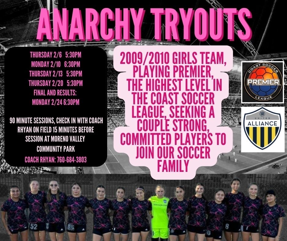 Moreno Valley – Girls 2009/10 – Feb 6-20. Details here. Moreno Valley Community Park. Contact Rhyan 760-684-3803